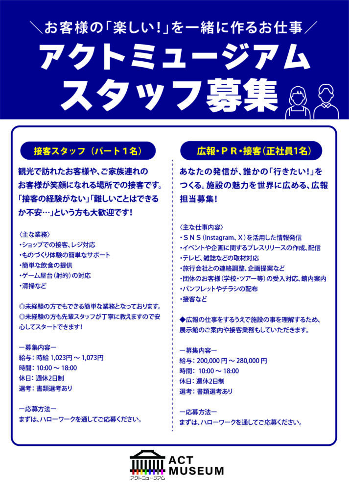 アクトミュージアムでは下記スタッフを募集しております。
