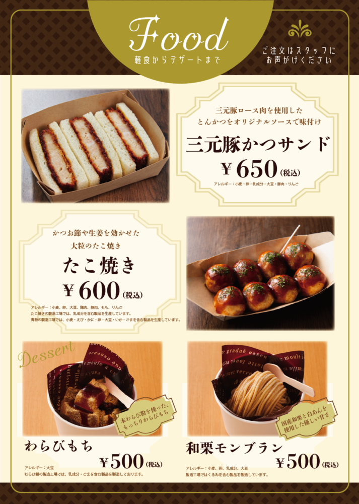 4月25日(土)より、軽食とデザートの販売を開始いたしました。