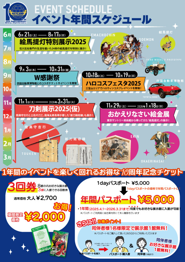 2025年4月1日から2026年3月31日までの間、お得に楽しめる展示館の記念チケットを販売いたします。