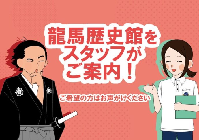 イベント情報 イベント一覧 すべて 近日開催 開催中 終了 イベント情報 2026年04月28日 展示館ご案内サービス イベント情報開催中 2026年04月26日 龍馬歴史館常設展「龍馬、その後…」 イベント情報近日開催 2026年04月26日 GWイベント情報 イベント情報 2026年04月19日 おすすめ!3回券チケット イベント情報 2026年3月28日~4月26日・4月28日~5月10日 2026.4月ものづくり体験 -April- イベント情報 2026年4月1日~2027年3月31日 ー年間カレンダーー2026年4月~2027年3月